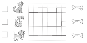 1.3只小狗跑得一样快,哪只小狗最先吃到骨头?在 里画“√”。