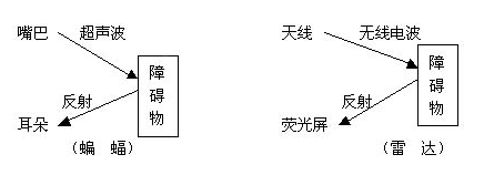 3. 请用画出蝙蝠幅探路和雷达探测。(4分)