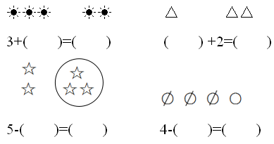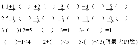 比5少2的数是( ),比3多1的数是( ),比0大3的数是( )。