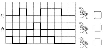 1.三只蚂蚁同时出发,速度一样。哪只蚂蚁先爬到终点?在它后面的 □ 里画“√”。(3分)