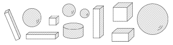 正方体有( )个,圆柱有( )个,长方体有( )个,球有( )个。