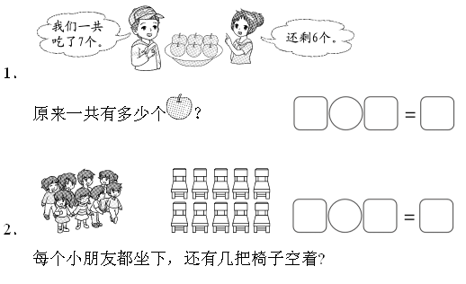 2.10-8=2 【点拨】分别数出小朋友的人数和椅子的把数,