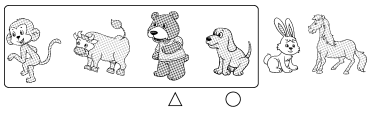 (2)在左边第3只动物下面画“△”,在右边第3只动物下面画“○”。