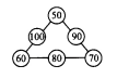 将50,60,70,80,90,100分别填入下图的○内,使图中每条线上的三个数的和是210。