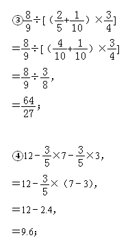 【分析】算式①、③根据四则混合运算的运算顺序计算即可.算式②、④可据乘法分配律进行计算即可尤其注意第二题中的数据.
