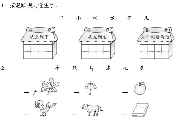 八、1.二 早 林 儿 小 水 2.把 个 只 头 本