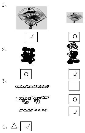 4、○△★○△★○△★○-- 下面应画哪一个图形,在正确答案的□里打“√”。