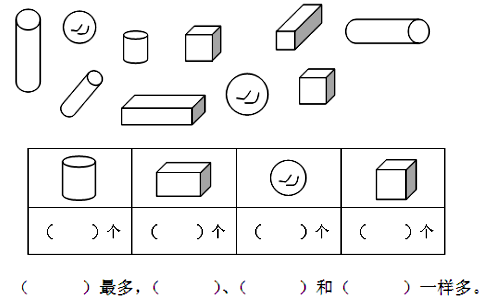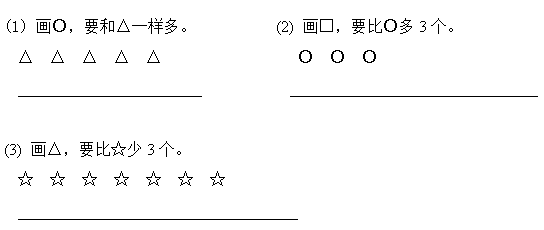 ⑶ ( )和△同样多,三角形比圆形少( )个。