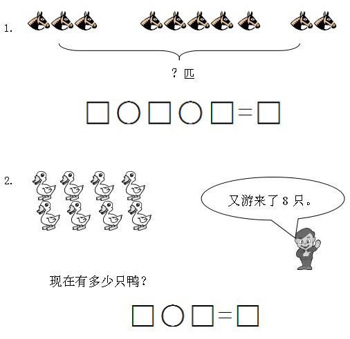 9+□=18 16-□=12 8+□=10 9 = □+5