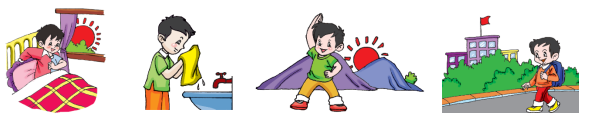 提示:按顺序观察四幅图,看看分别是在什么时间,小朋友在做什么。