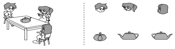 2.下面的图分别是谁看到的?把名字写在( )里。(4分)
