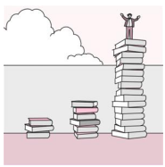 书籍是人类进步的阶梯,如图,这是一幅关于书的哲理漫画,请仔细观察,回答问题。