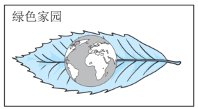 二、1.画面为一片大树叶托着一个地球,整个图形的轮廓似一只亮晶晶的眼睛。