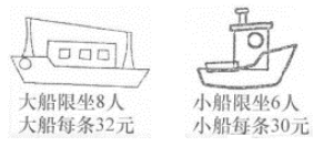 【解析】【解答】因为32÷8=4(元),30÷6=5(元),4<5,所以尽量多租大船且不要留空位,