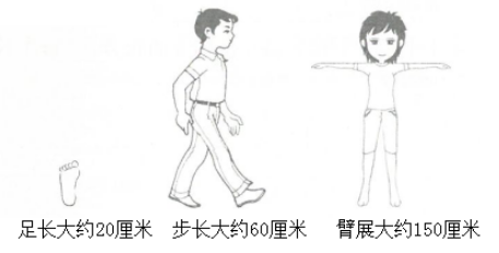 (2)解:步长,测量过程:先确定起点,作上记号,然后围绕篮球场走一圈,记下步数,然后用步数×60=篮球场一圈的长度。