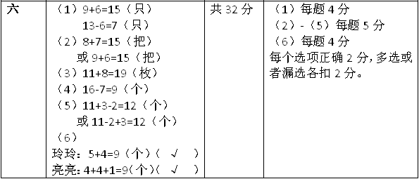 建议:一年级第一学期老师统一读题学生独立完成试卷。