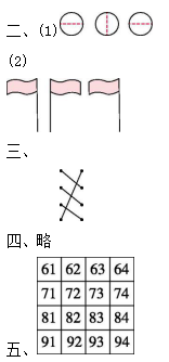 一、1.(1)3 2 32 (2)5 4 54 2.5 4 2 5 3.80 59 100 4.(1)个 十 百 (2)7 8 (3)98 100 (4)79 80 (5)6 6 十 5 5 一 (6)99 100 1 (7)95 三十八 (8)49 51 (9)50 (10)22 33 44 55(答案不唯一) 5.< < > = 6.(1)30 31 32 (2)90 70 60 (3)79 89 99 (4)68 58 48 7.(答案不唯一)