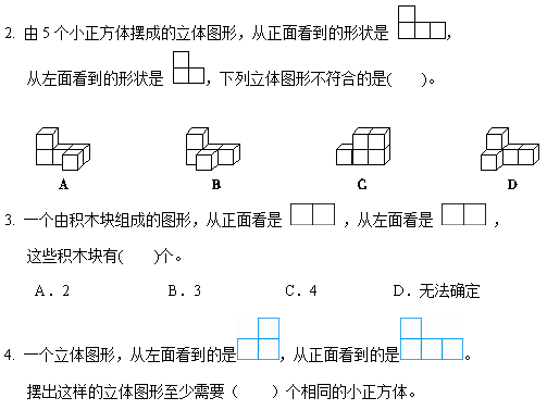 4. 从同一个方向观察一个正方体最多只能看到( )个面。