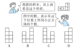 5. 如图所示,是由几个相同小正方体搭成的几何体从上面看到的图形,小正方形内的数字表示在该位置上的小正方体的个数。则这个几何体从前面看是( ),从右面看是( )。