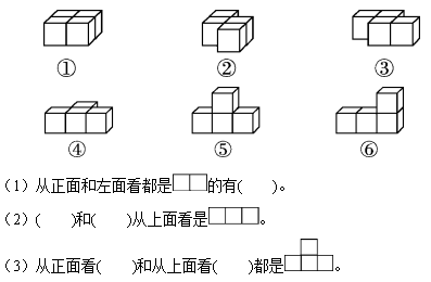 (4)如果从正面看到的和⑥一样,用5个正方体摆,摆成两行,有( )种不同的摆法。