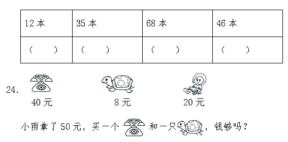 小明可能有多少本书?(画“√”),小英可能有多少本书?(画“△”)
