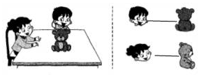 31.【分析】小男孩在小熊的后面,所以只能看到小熊的后背,看不到嘴巴;小女孩在小熊的侧面,所以只能看到小熊的侧面,但是能看到嘴巴;据此连线即可.