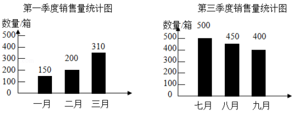 试题分析:(1)根据两个条形统考图所提供的数据,分别求出每一季度(一、二、三月)的平均销售量、第三季度(七、八、九月)的平均销售量,即可比较哪个季度月平均销售量多;