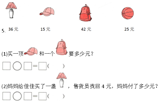 5.(1)15+49=57(元) (2)36+4=40(元)