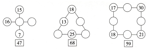 填数,使每条线上的3个数之和等于指定的数。