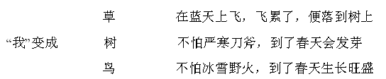 “我”变成一—树——不怕严寒刀斧,到了春天会发芽