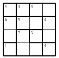 16.在下图的每个方格中填入1个数字,使得每一行每一列都有数字1、2、3、4且不重复,其中左上角的数字表示粗框内所填数字之和.