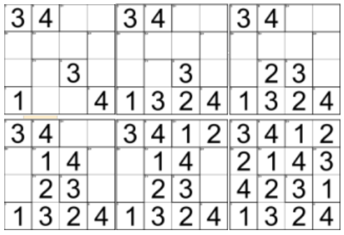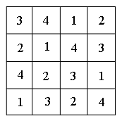 【解析】先把标有4的行列填好,再把标有1的行列填好,再把标有3的行列填好,最后填好剩余空格即可.