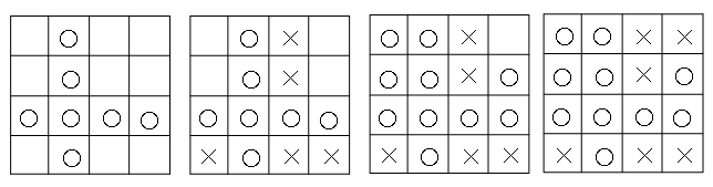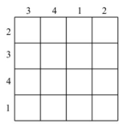 17.在下图的每个方格中填入○或×,满足:方框左边的4个数字代表这一行所含有的○的个数,方框上边的4个数字代表这一列所含有的○的个数.