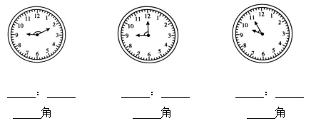 1. 先写出钟面上表示的时间,再写出时针和分针组成的角是直角、锐角还是钝角。