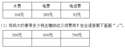 5. 下表是小美家一个月水费、电费和电话费的支出情况。