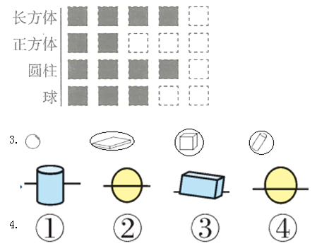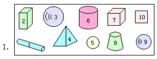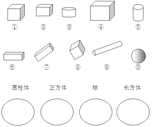 1.圆柱体: ③⑤⑨ 正方体:①⑧ 球:⑩ 长方体:②④⑥⑦