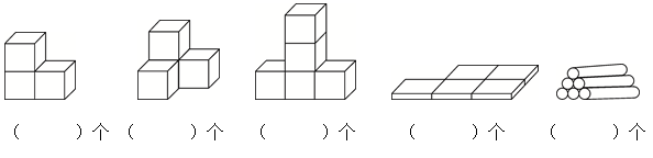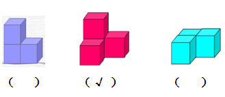 5.下面哪个形状不是用3个正方体拼成的?在( )里画√。