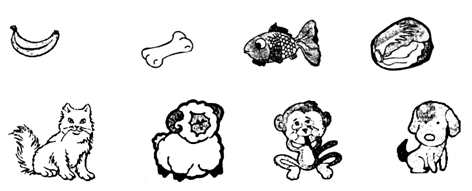 2. 这些食物该分给谁才合适呢?把它们用线连一连。