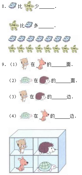 观察图片可以知道:“一一”对应之后,海螺没有剩余,但是海星有剩余,剩余1个.