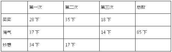 ⑶妙想第三次最少跳( )下,才能得第一名。