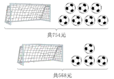 足球门:754-7×62=754-434=320(元)或 568-4×62=568-248= 320(元)