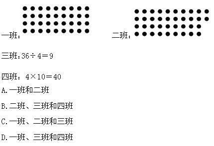 1. 下面( )的表示方式可以让我们看出班级人数恰好能排成 4 路纵队。