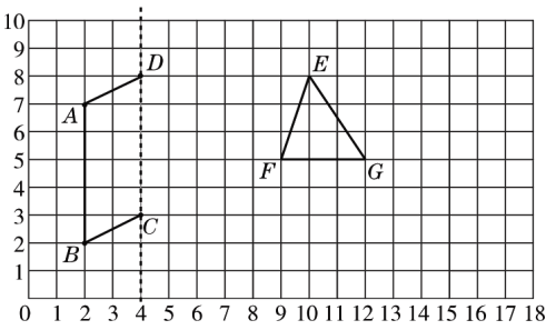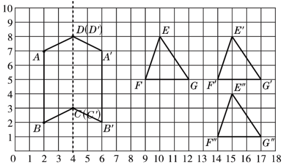 3. 把三角形 EFG 先向右平移 5 格,再向下平移 4 格,画出每次平移后的图形。