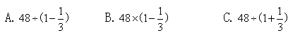 3.文艺书有48本,比科技书少1/3。求科技书有多少本,列式为( )。