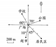 1.公园在广场的东偏( )( )方向上,距离广场( )m。