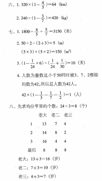 4.甲班学生不满50人,在一次课外活动中,参加各类运动的占全班人数的1/3,参加绘画的占全班人数的1/7,参加唱歌的占全班人数的1/2,余下的參加跳舞。參加跳舞的有多少人?(7分)