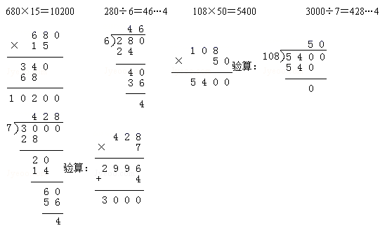 680×15 280÷6 108×50 3000÷7