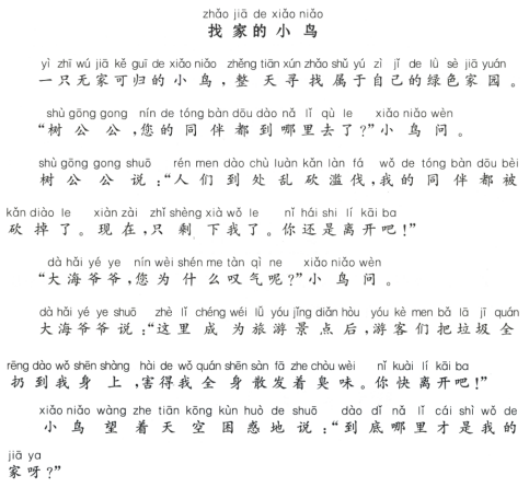 4.不例:人们植树造林,保护环境,小鸟就能找到自己的家。