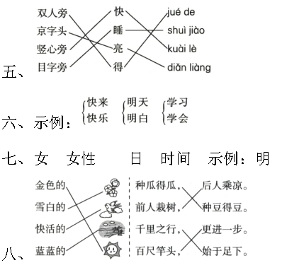 一、明天 雨衣 好的 人才 同学 白云 自己