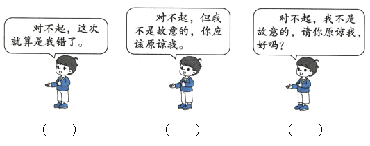 小明不小心将小红的书弄脏了,如果你是小明,怎么回答才最有礼貌呢?请在括号里打“√”